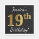 Guardanapo De Papel Preto, Faux Dourado 19º aniversário + Nome persona