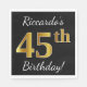 Guardanapo De Papel Preto, Faux Dourado 45º aniversário + Nome persona
