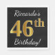Guardanapo De Papel Preto, Faux Dourado 46º Aniversário + Nome Persona