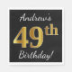 Guardanapo De Papel Preto, Faux Dourado 49º Aniversário + Nome Persona