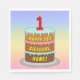 Este animado e colorido design de guardanapo de papel de aniversário apresenta uma representação em estilo cartoon de um bolo de aniversário de três níveis com uma vela em forma numérica por cima mostrando o número "1", juntamente com a mensagem "PRIMEIRO ANIVERSARIO FELIZ", e um nome de destinatário personalizado. O plano de fundo apresenta um espectro de arco-íris pastel de várias cores inspirado em gradiente. Os guardanapos de papel como estes podem ser usados para celebrar o primeiro aniversario de alguém. [~Z0000623]