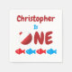 Pescar presentes de primeiro aniversário com peixes vermelhos e azuis e bobeira de pescador