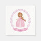 Uma princesa de cabelos castanhos, em um vestido cor-de-rosa, decora esses guardanapos. Personalize-o com o seu nome. Faz um sotaque bonito na festa de aniversário da sua garota. Projetado para você pelo Blackberry Boulevard.
