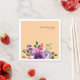 Design features purple watercolor flowers at the left bottom corner and white background. Easily customize with clicking button 'PERSONALIZE' that gives you the paper napkin automatically for your purpose.
