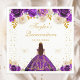 Este elegante e glamouroso guardanapo de Quinceañera apresenta uma bela princesa com cabelo escuro em um vestido de tiara e bola roxa. O texto combina o script manuscrito e as fontes sans serif modernas para um aspecto elegante e sofisticado. Os arranjos florais e o confete de ouro criam a mistura perfeita de rústicos e quicos. Gráficos por www.etsy.com/uk/shop/SunflowerDayLove
