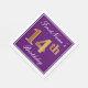 Este simples e elegante design de guardanapo de papel apresenta uma mensagem como "Aniversário do 14 do Primeiro Nome" (com o "14" a ter uma coloração falsa em ouro) dentro de uma área quadrada de cor púrpura com um contorno de fronteira simples. O nome está em um texto semelhante a script de cor branca e pode ser personalizado. Napkins como estes poderia talvez ser usado numa festa de aniversário para alguém que comemora seu décimo quarto aniversário. [~Z0000140]