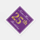 Este simples e elegante design de guardanapo de papel apresenta uma mensagem como "Aniversário do 25 do Nome-Aqui" (com o "25" a ter uma coloração falsa em ouro) dentro de uma área quadrada de cor púrpura com um contorno de fronteira simples. O nome está em um texto semelhante a script de cor branca e pode ser personalizado. Napkins como estes poderia talvez ser usado numa festa de aniversário para alguém que comemora seu vigésimo quinto aniversário. [~Z0000140]