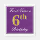 Este simples e elegante design de guardanapo de papel apresenta uma mensagem como "Aniversário do 6 do Primeiro Nome" (com o "6" a ter uma coloração falsa em ouro) dentro de uma área quadrada de cor púrpura com um contorno de fronteira simples. O nome está em um texto semelhante a script de cor branca e pode ser personalizado. Napkins como estes poderia talvez ser usado numa festa de aniversário para alguém que comemora seu sexto aniversário. [~Z0000140]