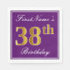 Este simples e elegante design de guardanapo de papel apresenta uma mensagem como "38.º Aniversário do Primeiro Nome" (com o "38.º" a ter uma aparência falsa de cor dourada) dentro de uma área quadrada de cor púrpura com um contorno simples da fronteira. O nome está em um texto semelhante a script de cor branca e pode ser personalizado. Napkins como estes poderia talvez ser usado numa festa de aniversário para alguém que comemora seus trinta e oito anos de aniversário. [~Z0000140]
