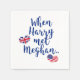 NewParkLane - Paper Napkins, com uma citação divertida 'Quando Harry encontrou Meghan', em uma elegante tipografia azul, e as bandeiras do Reino Unido e dos Estados Unidos em forma de coração. Uma forma excelente de celebrar o Casamento Real do Príncipe Harry e Meghan Markle em 19 de maio de 2018! Também disponível em vermelho. Veja esta coleção para itens correspondentes, como copos de papel, pratos e muito mais. Você tem desejos pessoais específicos de design? Sinta-se livre para me contactar!