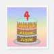 Este colorido e divertido design de papel de aniversário guardanapo apresenta uma representação em estilo cartoon de um bolo de aniversário de três níveis, com uma vela em forma de número no topo, mostrando a idade "4", juntamente com a mensagem "FELIZ 4.º ANIVERSÁRIO", e um nome de destinatário personalizado. O fundo tem um espectro de arco-íris pastel de várias cores inspirado em um padrão de gradiente. Os guardanapos de papel mais altos como estes podem ser usados ao hospedar uma festa para alguém em comemoração do seu quarto aniversário. [~Z0000623]