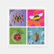 Insetos no design bonito e colorido são a aranha, a abelha-lombo, a ladybug e o Inseto-cheiro. Cada inseto tem um fundo apropriado: folhas (joaninha), teia (aranha), flores (abelha) e uma nuvem de gás (inseto fedorento).