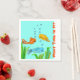 Pequenos e engraçados guardanapos de papel-coquetel com peixes nadando em laranja, azul e amarelo. Personalize o texto para se adequar à sua ocasião especial. A cor azul clara do fundo pode ser alterada para a cor pastel favorita para coordenar as cores do evento. Design de diversão para chaleira ou resort de pesca.