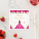 Este elegante e glamouroso e doce guardanapo apresenta uma bela princesa com cabelo vermelho castanho e pele clara num vestido de bola rosa quente. O texto combina o script manuscrito e as fontes sans serif modernas para um aspecto elegante e sofisticado. Os arranjos florais, borboletas e confete de ouro criam a mistura perfeita de rústicos e quicos. Gráficos por www.etsy.com/uk/shop/SunflowerDayLove