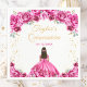 Este elegante e glamouroso guardanapo de aniversário da Quinceañera apresenta uma bela princesa com cabelo escuro num vestido de bola rosa quente. O texto combina o script manuscrito e as fontes sans serif modernas para um aspecto elegante e sofisticado. Os arranjos florais e o confete de ouro criam a mistura perfeita de rústicos e quicos. Gráficos por www.etsy.com/uk/shop/SunflowerDayLove