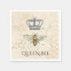 "Rainha Bee" lê o texto sobre esses guardanapos com ilustração de coroa e abelha. Perfeito para uma celebração de Dia de as mães.
