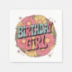 Um design divertido e vibrante perfeito para qualquer garota de aniversário! Apresentando uma fonte inspirada no retrô com flores coloridas, cor-de-rosa e amarelas, este trabalho de arte alegre é ideal para celebrações de aniversário, festas e presentes. Uma escolha excelente para aqueles que amam a estética da safra, designs florais e vibrações positivas!
