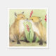 Uma pintura aquarela de dois kits de raposa vermelha no primavera adorna estes guardanapos de festa!
