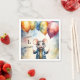 Este guardanapo apresenta um rato fofo com uma jaqueta e calças, segurando muitos balões em suas mãos. Arte digital - aquarela. Um motivo super fofo para crianças! Bonito guardanapos personalizáveis para o aniversário do Kid, chá de fraldas e muito mais!