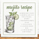 Guardanapos com uma fotografia de mosquito refrescante e uma receita para dar aos seus amigos ou familiares com a bebida de mojito para a próxima festa.