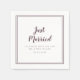 Guardanapo de cocktail de casamento “Acaba de Casar” em um estilo moderno e minimalista, apresentando uma borda de quadro duplo em plumagem profunda sobre branco crocante. O layout limpo e a escrita elegante criam um visual clássico e atemporal que eleva qualquer bar de casamento ou hora do coquetel. Personalize os nomes e a data para celebrar o novo Sr. e Sra. de uma maneira sofisticada e contemporânea. Combine esses guardanapos com os itens correspondentes desta coleção para um visual de recepção coeso.