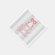 This coquette baby shower napkin features a red bow on a cream background with Pale blue stripes. Personalize it for your needs. You can find matching products at my store.