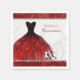 Sirva seus hóspedes em estilo com esses fraldas de quinceañera modernos com um vestido brilhante em cintilação vermelha e preta com saltos brilhantes entre uma borda de diamante e uma banda vermelha cintilante. O fundo é uma seda branca macia. Script elegante em vermelho para detalhes da festa. É fácil personalizar com opções personalizadas.