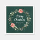 Este guardanapo alegre e festivo apresenta uma coroa com poinsetos vermelhos e holly sobre um fundo verde escuro. O texto combina o script manuscrito e as fontes serif para um aspecto elegante e sofisticado. Isto é perfeito para festas de férias, embrulhos, festas de janto, casa aberta e muito mais.