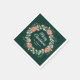 Este guardanapo alegre e festivo apresenta uma coroa com poinsetos vermelhos e holly sobre um fundo verde escuro. O texto combina o script manuscrito e as fontes serif para um aspecto elegante e sofisticado. Isto é perfeito para festas de férias, embrulhos, festas de janto, casa aberta e muito mais.