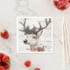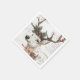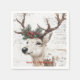 Este guardanapo festivo apresenta uma ilustração rústica de uma rena com um pinho e uma coroa de morango vermelha em suas galhadas. O plano de fundo tem um aspecto antigo, texturizado com script manuscrito, e "Feliz Natal" é exibido em negrito texto vermelho. Perfeito por adicionar um toque de feriado aconchegante à sua época de Natal.