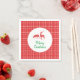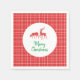 Um guardanapo de Natal feliz com duas renas elegantes com um padrão de xadrez vermelho, verde, preto e branco. Fácil de personalizar com seu ditado de feriado.