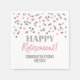 Feliz guardanapo de aposentadoria com padrão de confete rosa e prateado.