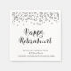Tipografia moderna com script HAPPY RETIREMENT napkins personalizado com o nome do aposentado, anos de serviço e a empresa ou negócio, organização ou nome escolar. Borda de confete prateado com texto preto. Entre em contato com o designer se você quiser que este design seja modificado ou em outro produto para complementar o conjunto da sua parte aposentada.
