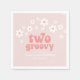Dois Groovy! Os guardanapos de segundo aniversário inspirados na Retro com margaridas do estilo 70 e fontes e cores de som.