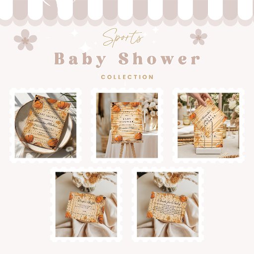 Celebrate your all-star mom-to-be with this vintage basketball-themed design featuring warm tones, classic textures, and golden trophy accents. Perfect for sporty parents and basketball fans, this design blends retro charm with modern elegance for a baby shower that’s full of energy and team spirit.