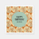 Este guardanapo de aniversário retrô apresenta uma flor de margarida abstrato em um padrão sem costura no estilo de um triquete giro e ranhoso em um fundo castanho.