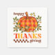 Os guardanapos coloridos do estilo da manivela retrô. Imagens retrorreflectoras "Feliz Dia de Ação de Graças", com flores bonitinhas, estrelas e uma abóbora de cadarço.