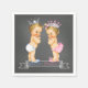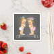 Guardanapos de revelação de gênero com adoráveis bebês príncipe e princesa de cabelo loiro usando coroas prateadas em um fundo de faixa de lousa. Você pode adicionar o texto de sua escolha e alterar o texto da faixa nestes guardanapos de revelação de gênero fofos.