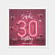 Isto não é apenas um guardanapo; é a peça central glamourosa que a sua aniversário de 30 anos de marco merece. O design apresenta um '30' metálico rosa-dourado, arrojado, 3D, com um néon cor-de-rosa brilhante interior, criando um aspecto vibrante e elétrico. Esse número de alto impacto se senta sobre um rico e profundo pano de fundo magenta, acentuado por um chá de confete correspondente e balões refletores. Personalize facilmente o script branco elegante para o nome do convidado e a data do evento. Perfeito para uma celebração sofisticada ou de alta energia.