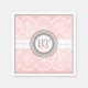 Rosas claro, guardanapo de papel branco padrão para casamentos com iniciais, apresentando um padrão com rendas cor-de-rosa e branco, uma faixa branca ao longo do guardanapo e uma linha pontilhada sobre ele e suas iniciais em um quadro com pontos de cinza. Há uma fronteira de cinza ao redor. Este guardanapo giro e giro de papel é perfeito para outras ocasiões especiais, como chás de panela, festas de aniversário, chás de fraldas, aniversários, festas de noivado etc. Você pode personalizá-lo e adicionar sua mensagem ou monograma.