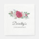 As rosas vermelhas suaves e as sagradas e as bagas criam um arranjo belamente rústico. As folhas de eucalipto e outras flores vermelhas acrescentam à vibração botânica do inverno. O nome da aniversariante está escrito em uma grande fonte de script. Este guardanapo faz parte da Rosa de aniversário e da coleção Holly. Contém muitos modelos DIY que permitem criar rapidamente convites e suprimentos de festas.