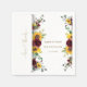 EVENTOS! Design de cartão único, romântico, com rosas de madeira, folhas, girassóis, folhagem de eucalipto, caligrafia moderna de "amor e obrigados" de ouro falso, sobre um fundo branco único. Use a ferramenta Personalizar para adicionar suas informações. Para itens correspondentes, por favor, visite minha Coleção de Girassóis de Rosas de Borgonha.