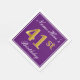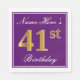 Este simples e elegante design de guardanapo de papel apresenta uma mensagem como "Aniversário de 41ruas do Name-Here" (com a "41ruas" com um aspecto de cor dourada falsa) numa área quadrada de cor roxa com um contorno de fronteira simples. O nome está em um texto semelhante a script de cor branca e pode ser personalizado. Napkins como estes poderia talvez ser usado numa festa de aniversário para alguém que comemora seus quarenta anos de primeiro ano. [~Z0000140]