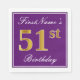 Este simples e elegante design de guardanapo de papel apresenta uma mensagem como "51ruas de Aniversário do Primeiro Nome" (com a "51ruas" a ter um aspecto falsa de cor dourada) numa área quadrada de cor roxa com um contorno de fronteira simples. O nome está em um texto semelhante a script de cor branca e pode ser personalizado. Napkins como estes poderia talvez ser usado numa festa de aniversário para alguém que comemora seus cinquenta anos de primeiro ano. [~Z0000140]