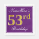 Este simples e elegante design de guardanapo de papel apresenta uma mensagem como "NameHere's 53rd Birthday" (com o "53º" a ter uma aparência falsa de cor dourada) dentro de uma área quadrada de cor púrpura com um contorno simples da fronteira. O nome está em um texto semelhante a script de cor branca e pode ser personalizado. Napkins como estes poderia talvez ser usado numa festa de aniversário para alguém que comemora seus cinquenta e três anos. [~Z0000140]