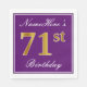 Este simples e elegante design de guardanapo de papel apresenta uma mensagem como "NameHere's 71rua Birthday" (com a "71ruas" com uma falsa coloração em forma de ouro) dentro de uma área quadrada de cor roxa com um contorno simples de fronteira. O nome está em um texto semelhante a script de cor branca e pode ser personalizado. Napkins como estes poderia talvez ser usado numa festa de aniversário para alguém que comemora seus setenta anos de primeiro ano. [~Z0000140]