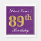 Guardanapo De Papel Roxo Elegante, Faux Dourado 89º Aniversário + Nome