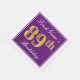 Este simples e elegante design de guardanapo de papel apresenta uma mensagem como "89º Aniversário do Primeiro Nome" (com o "89º" a ter uma cor falsa em forma de ouro) dentro de uma área quadrada de cor púrpura com um contorno de fronteira simples. O nome está em um texto semelhante a script de cor branca e pode ser personalizado. Napkins como estes poderia talvez ser usado numa festa de aniversário para alguém que comemora seu oitenta e nono aniversário. [~Z0000140]