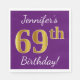 Guardanapo De Papel Roxo, Faux Dourado 69º Aniversário + Nome Personal