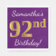 Guardanapo De Papel Roxo, Faux Dourado 92º Aniversário + Nome Personal